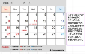 ー 2月お知らせ -こんちには❄︎ 2月のカレンダーができました。 ☆11日(水)㊗️18:30までの受付 ☆17日(火)午前休診 ☆23日(月)㊗️休診 毎日寒いですね❄︎ 寒い中でも、心と体をあたためるお手伝いさせていただきだきます‼︎ 皆さまのご来院スタッフ一同お待ちしています😄✨